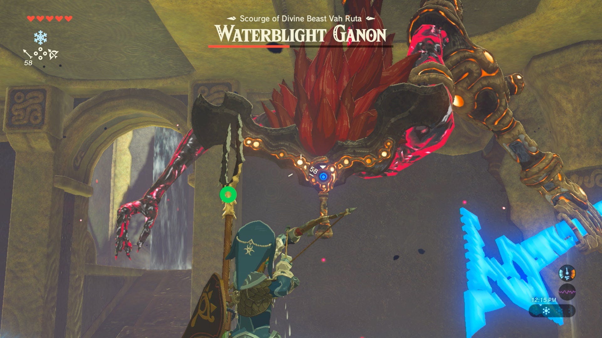 In practice, I’m at Calamity Ganon’s doorstep. Link is an abundantly resourced, superbly equipped powerhouse. In open combat, my Ancient Armor prevents most damage, while my stores of ‘++’ Guardian weapons receive obscene boosts from the ancient set bonus and plentiful cooking. I only need three weapon slots to manage more ordinary usage: the master sword, a Sledgehammer (never leave home without it), and a Royal Claymore or some similarly replenishable weapon. I’ve got low-power sniper bows, high power regular bows, multi-shot bows, 200+ regular arrows, 50+ of each elemental arrow, and a handful of ancient arrows.